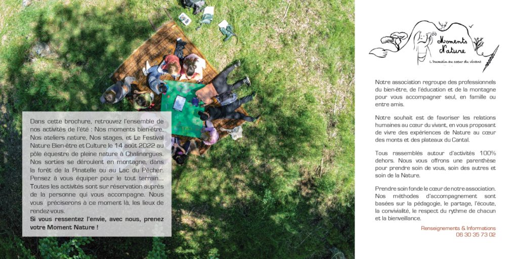 Tous rassemblés autour d‘activités 100% dehors. Nous vous offrons une parenthèse pour prendre soin de vous, soin des autres et soin du vivant qui nous entoure.
